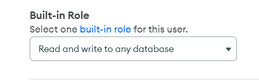 6. Database access를 설정한다. 사용자 id를 만들고 autogenerate secure password를 통해 암호를 생성한다. Built-in Role에서 "read and write to any database"를 선택한 후 "Add User"를 눌러서 사용자 생성을 완료한다. 해당 ID와 Password는 어플리케이션 코드에서 사용되어 해당 DB에 접속할 수 있게 된다. 본 계정 정보가 없으면 현재 DB에 접속할 수 없다. Network Access와 함께 이중 보안인셈.