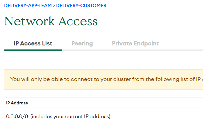 5. DB의 network access를 설정한다. 본 작업은 해당 DB에 접속 가능한 IP를 등록하는 것이다. 아래처럼 0.0.0.0/0이면 모든 IP에서 접속할 수 있다는 것을 의미한다. 현재는 일단 이렇게 진행하도록 한다. 어짜피 Database access 설정을 통해 접근을 제한할 수 있다.