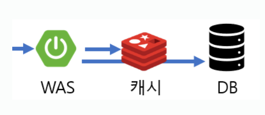 하나는 다음과 같이 WAS가 DB를 참조할 때 사이에 캐시를 끼워넣어서 데이터를 읽는 속도를 향상시키는 용도로 사용하는 것이다. WAS와 DB 사이에 캐시를 넣으면 WAS가 DB를 읽기전에 캐시를 먼저 참조하고 데이터가 있으면 그 데이터를 그대로 사용하고 데이터가 없으면 DB에서 데이터를 읽어오고 캐시에 저장해두는 방식이다.