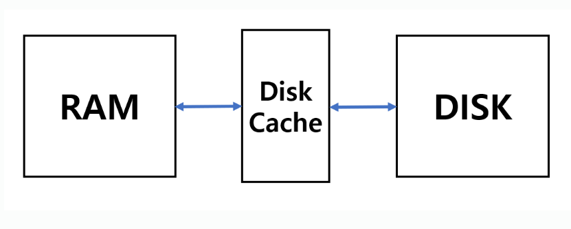 Disk buffer라고 하기도 한다. 데이터 읽는 속도를 향상 시키기 위해 RAM과 HDD 또는 RAM과 SSD 사이에 있는 저장장치를 의미한다. 이 캐시는 HDD에 내장되어 있을 수도 있고, RAM의 일부분을 빌려올 수도 있다.