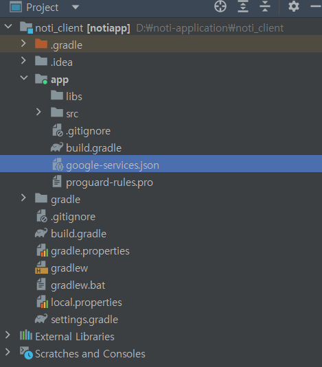 "Server Side Setting - Firebase Admin SDK"에서 다운로드 받은 json파일을 프로젝트 루트 디렉토리에 포함시킨다.