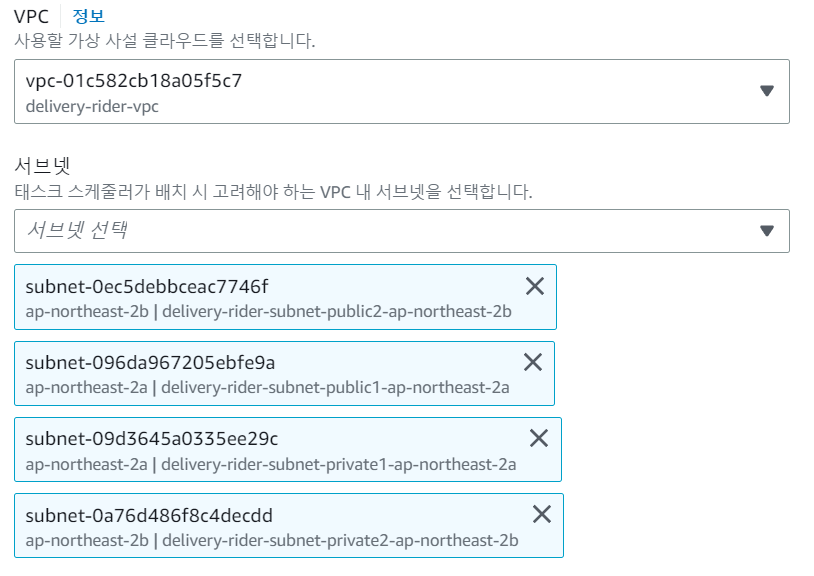 public subnet을 사용하여 ECS를 생성한다. (private subnet이 함께 포함되어도 상관없다.)