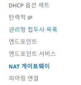 2. 왼쪽 탭에서 NAT gateway를 선택한다.