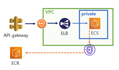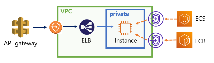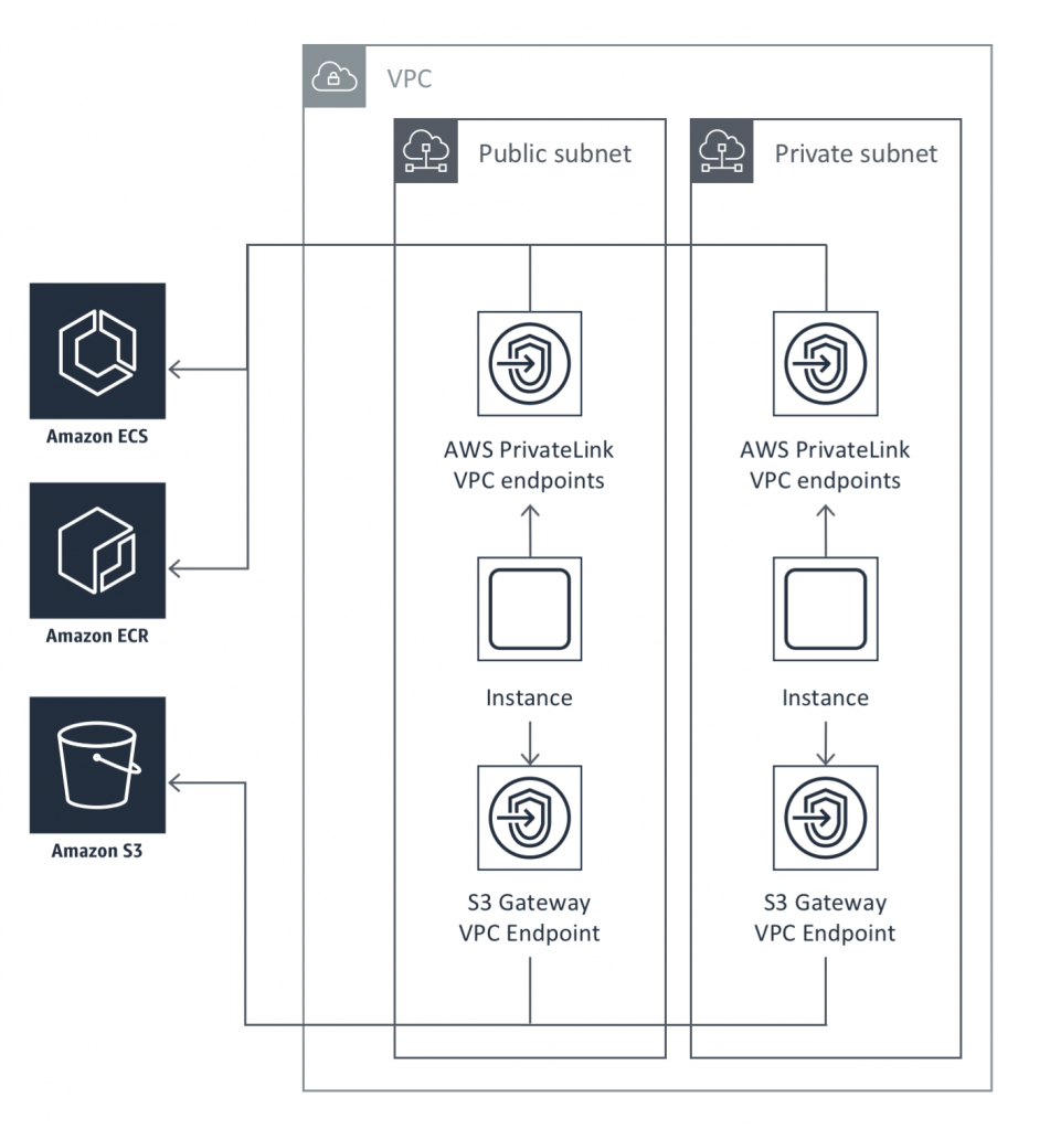 VPC Endpoint를 통해 Private subnet 상에 있는 ECS와 ECR을 서로 연결해주면 ECR에 있는 이미지를 ECS가 가져와 쓸 수 있다.