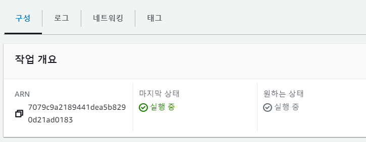 이렇게 서비스 또는 태스크를 생성하면된다. 엔드포인트를 생성하여 ECR과 ECS를 연결해줬기 때문에 정상적으로 이미지를 불러와 태스크를 생성한 것을 확인할 수 있다.