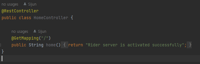 예를 들면 현재 글쓴이의 Controller 매핑은 다음과 같이 되어있는데, GetMapping 주소가 "/"로 되어있으면 HTTP API gateway에서도 "/"로 설정해줘야 한다.